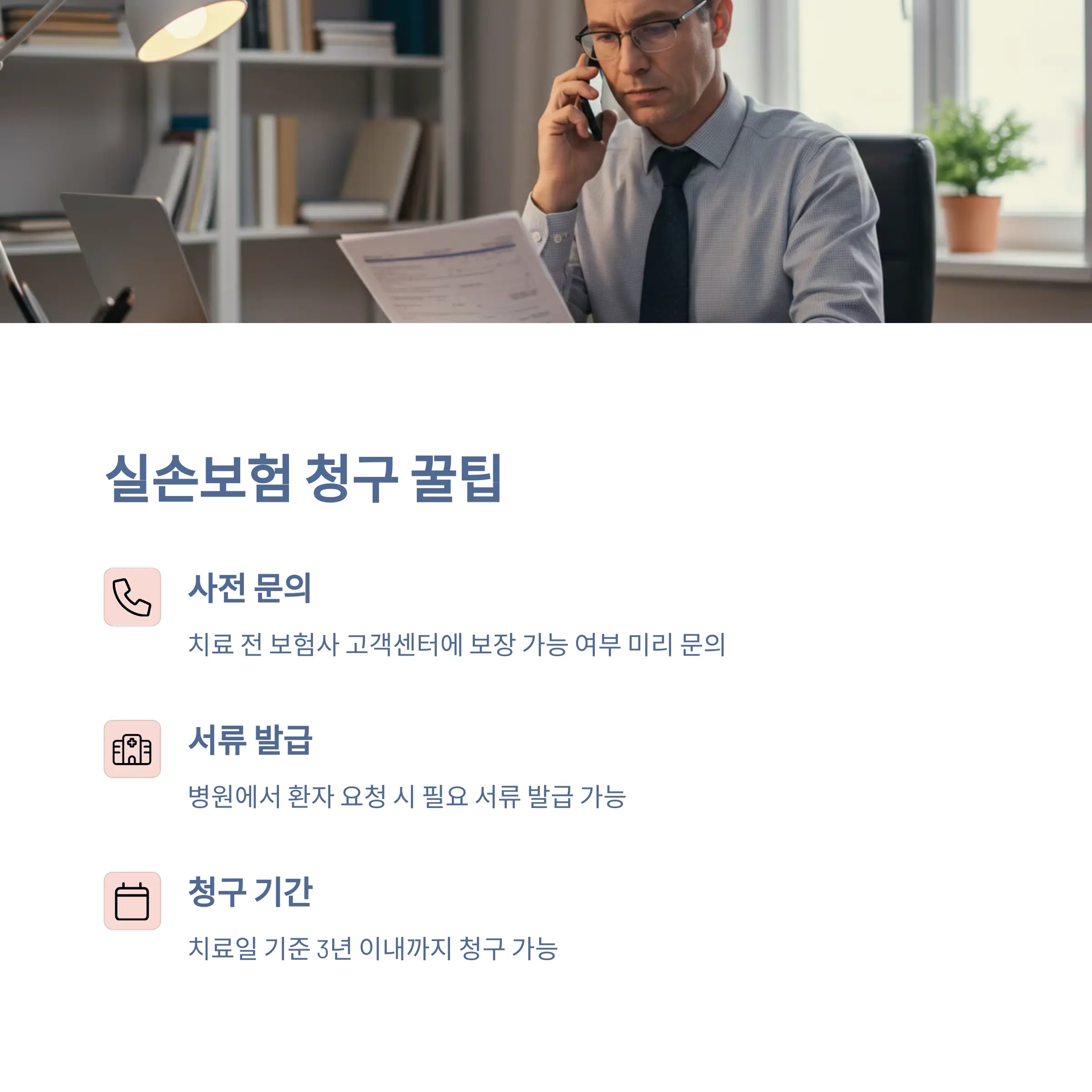 - 치료 전 보험사 고객센터에 보장 가능 여부를 미리 문의하세요.