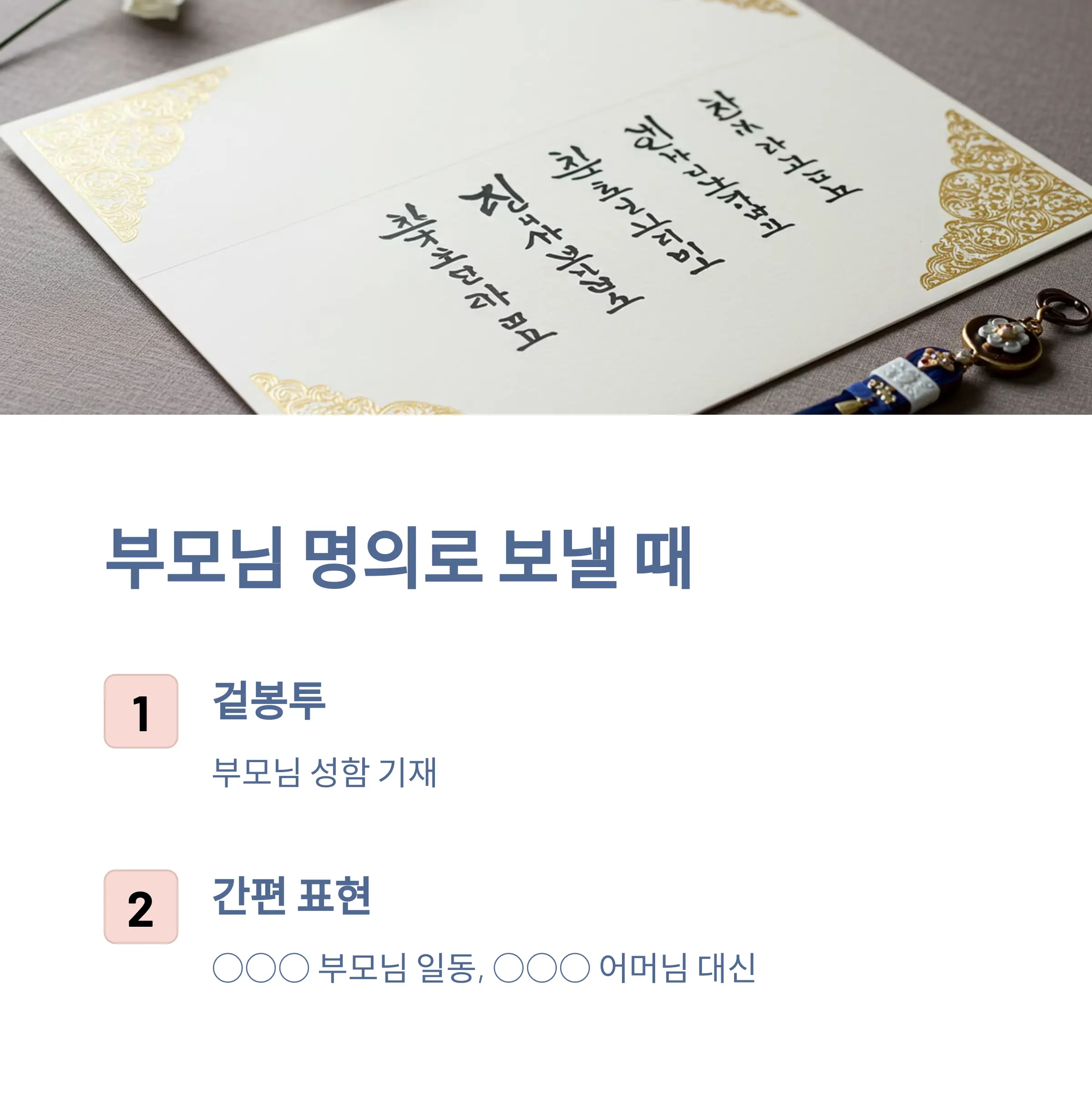 - 겉봉투에는 부모님 성함을 쓰고, 속지는 비워둡니다.
