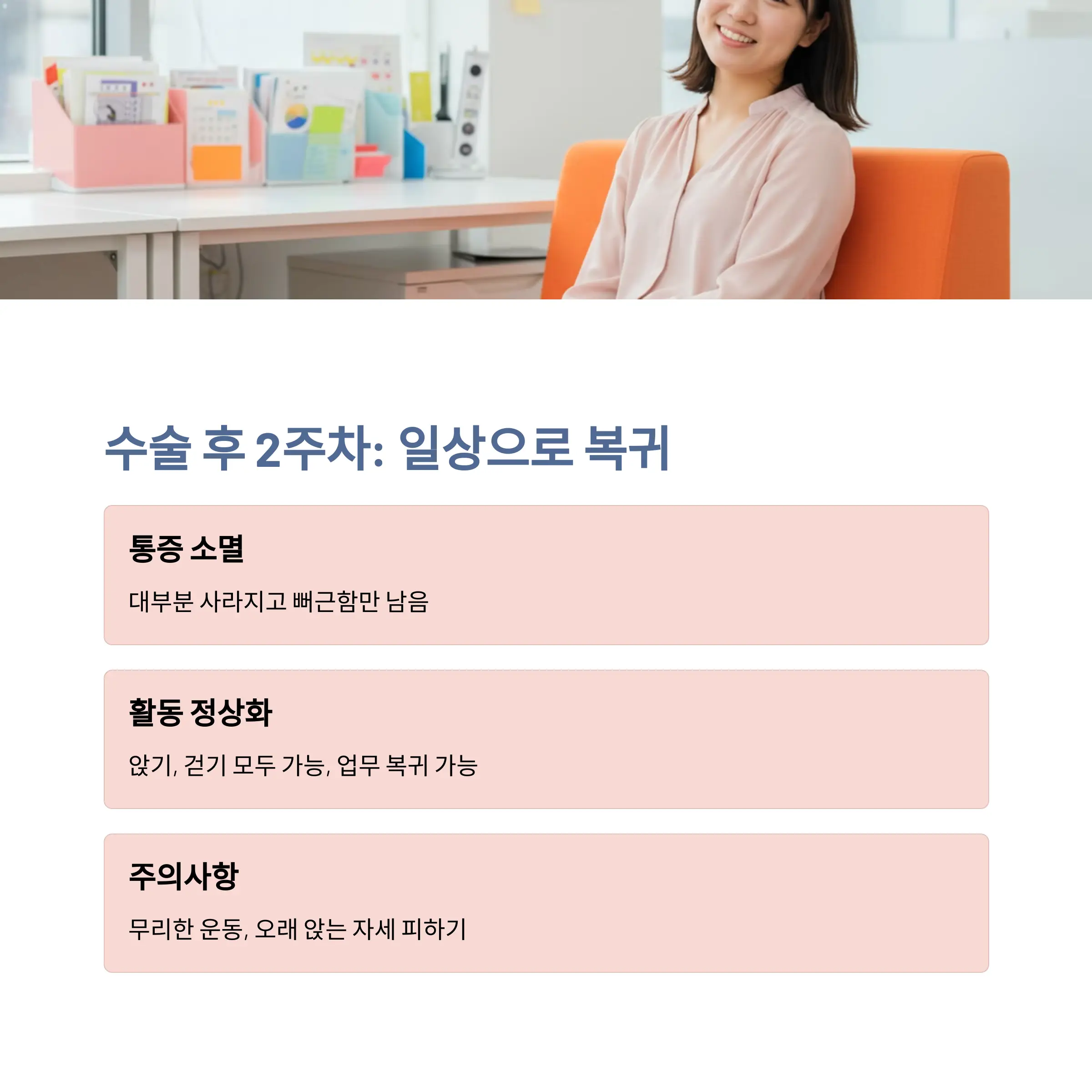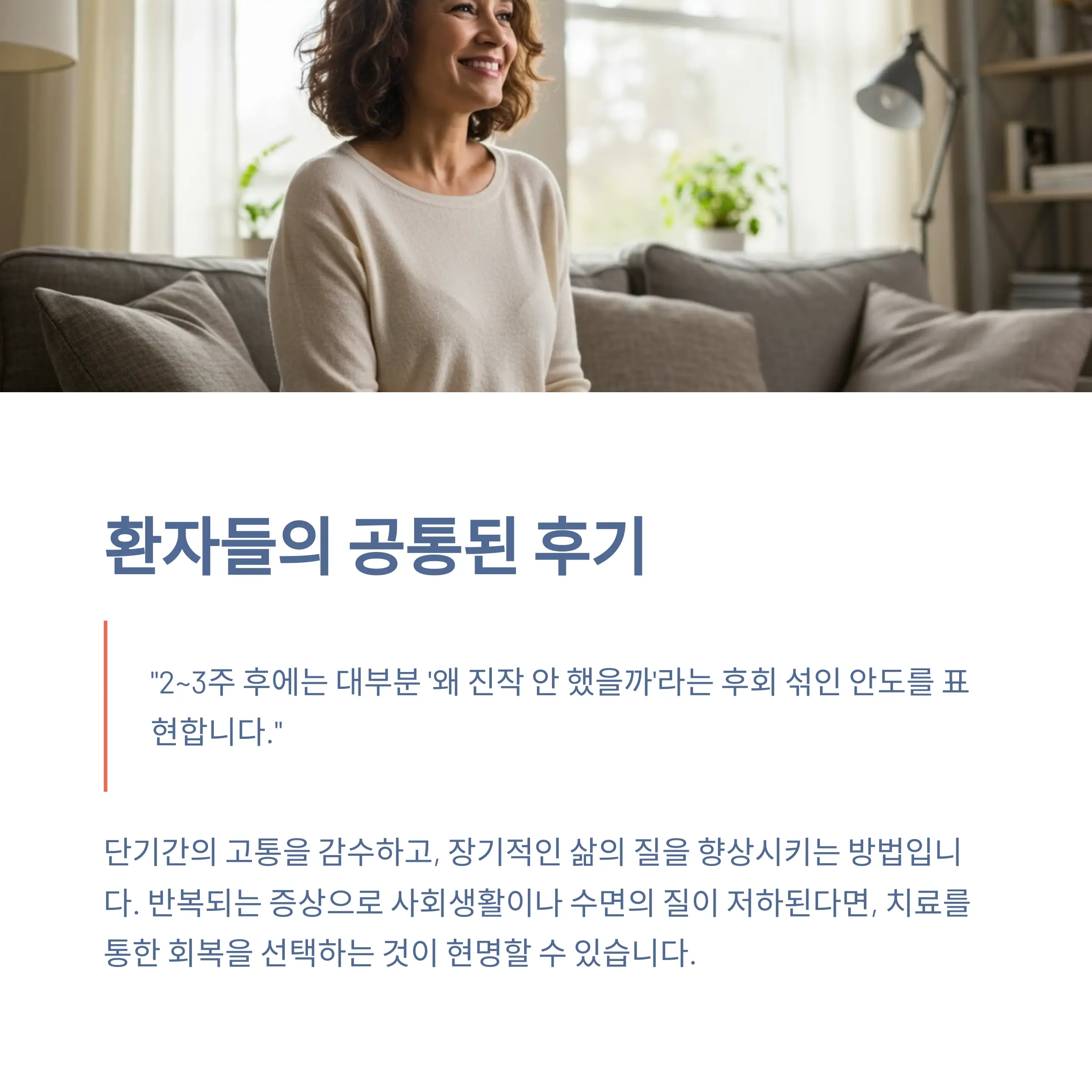 설명만 듣고 보면 가벼워 보일 수 있지만, 실제로 겪는 회복기는 개인차가 큽니다. 이 점을 미리 인지하고 접근하는 것이 정신적으로도 도움이 됩니다.