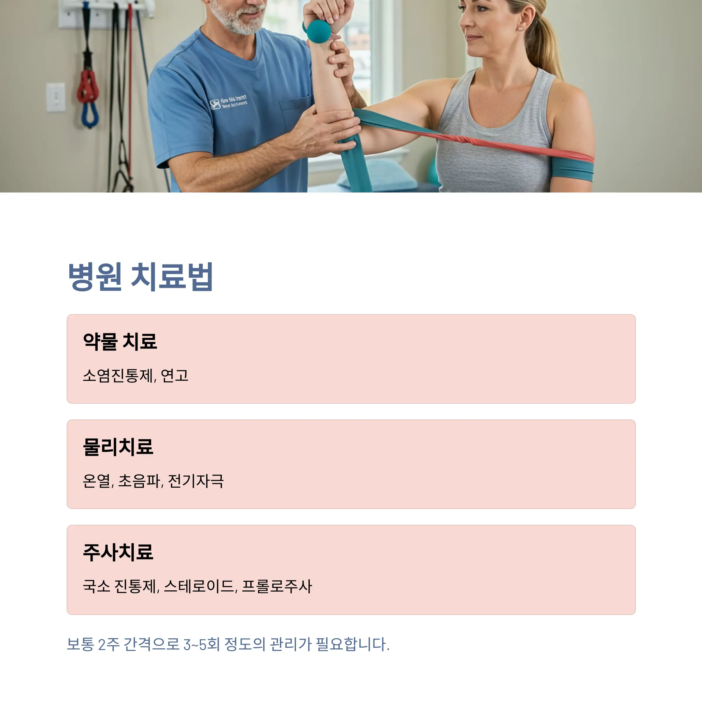 • 물리치료: 온열, 초음파, 전기자극 등으로 회복 촉진