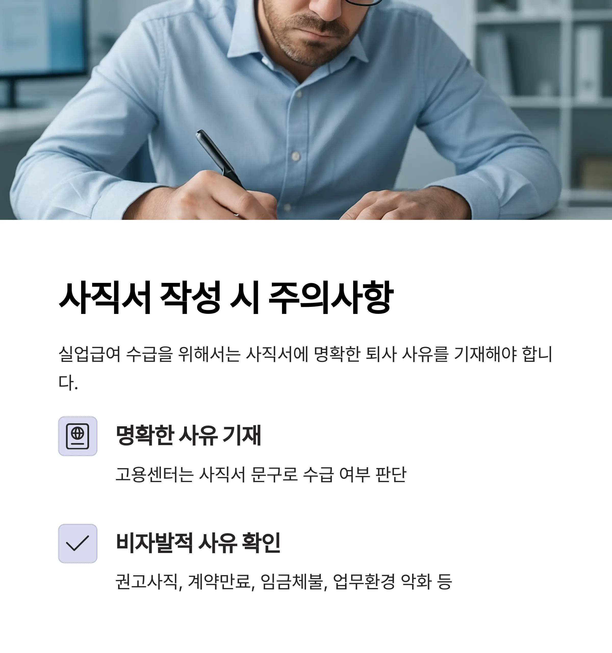특히 비자발적 퇴사를 계획 중이라면, 사직서에 명확한 사유 기재도 중요합니다.