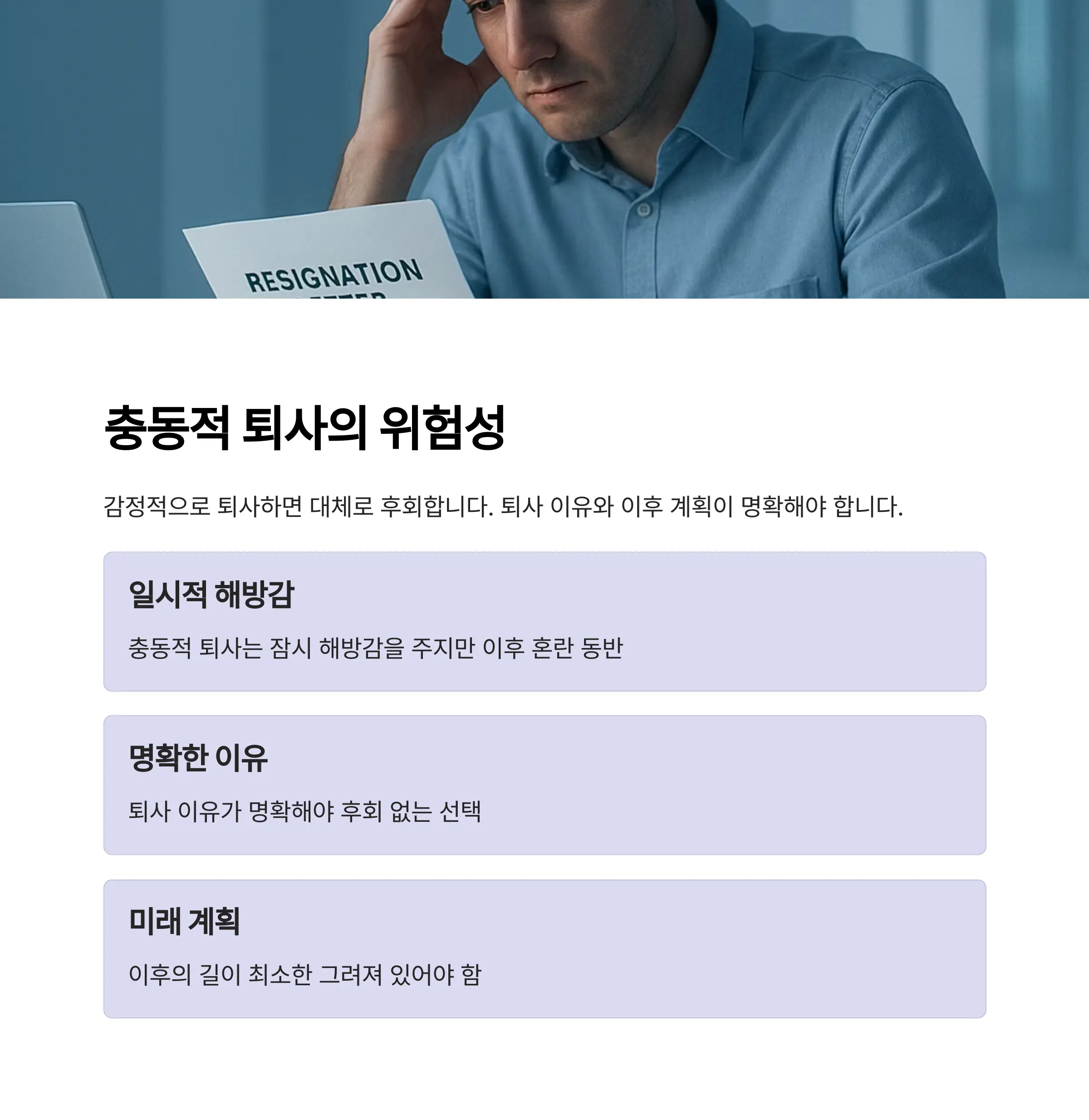 충동적인 퇴사는 일시적 해방감을 주지만, 이후의 혼란을 동반합니다.