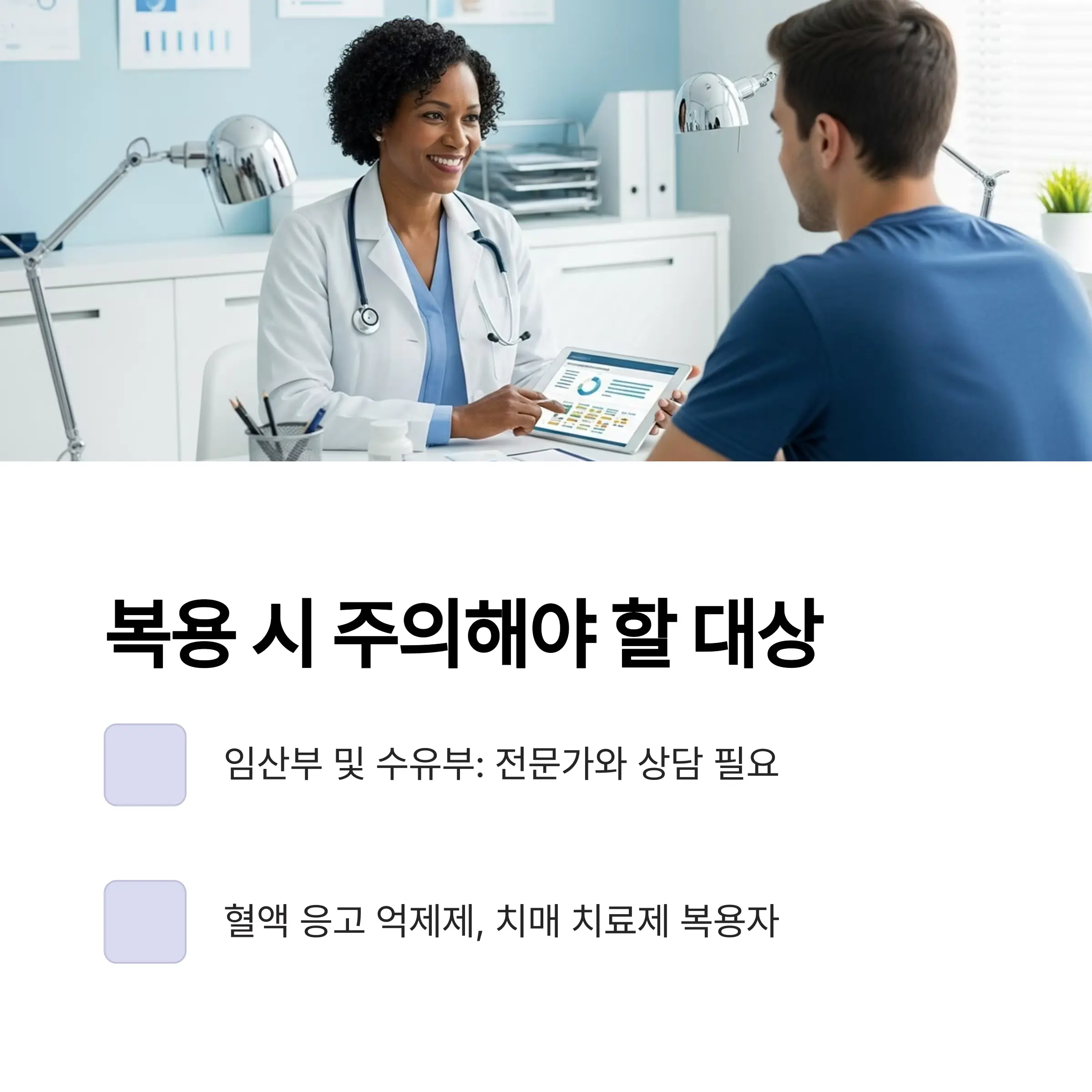 - 임산부 및 수유부: 안전성 연구가 충분하지 않으므로, 복용 전 반드시 전문가와 상담해야 합니다.