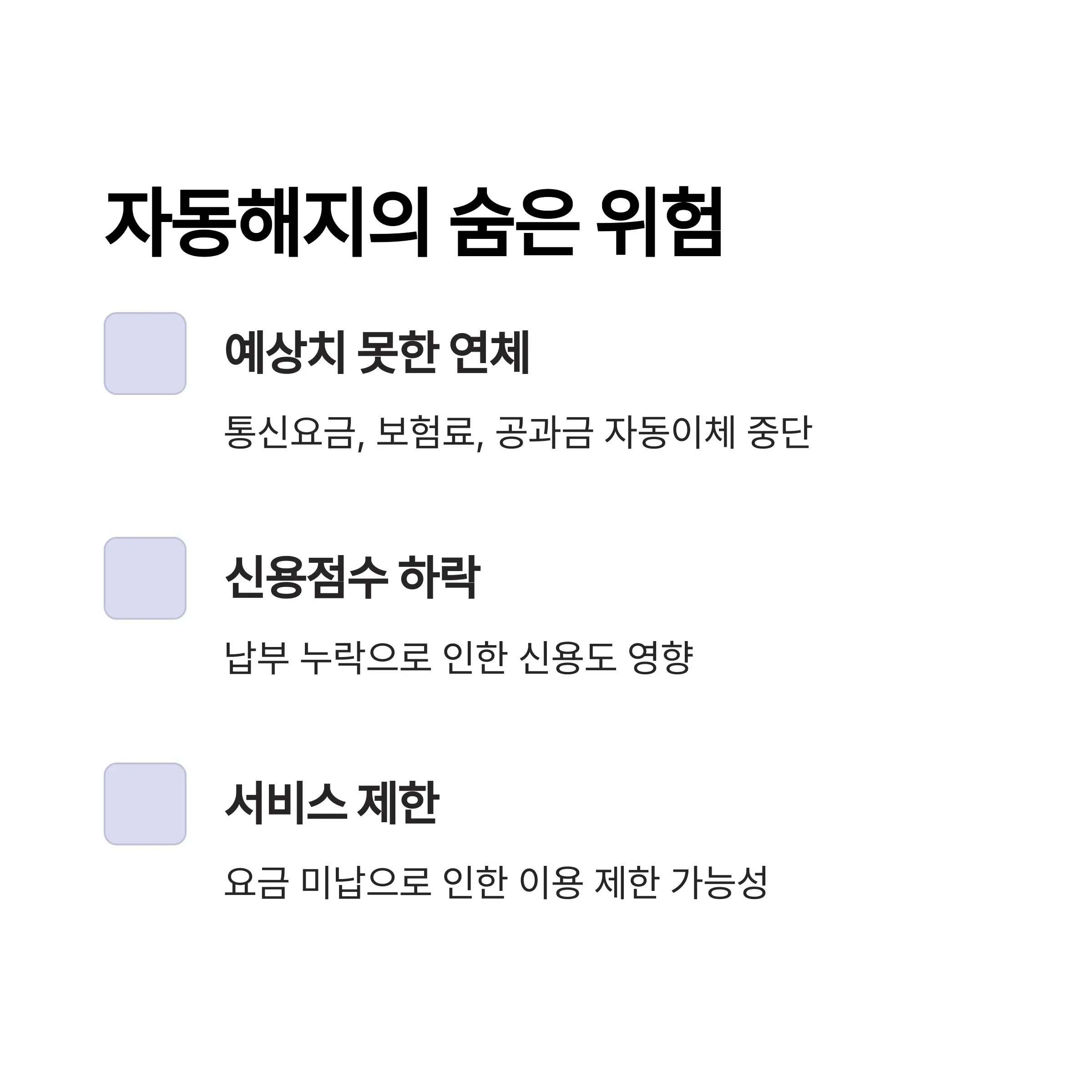 자동납부는 등록되어 있어도, 연결된 계좌가 해지되면 기능이 멈춥니다.