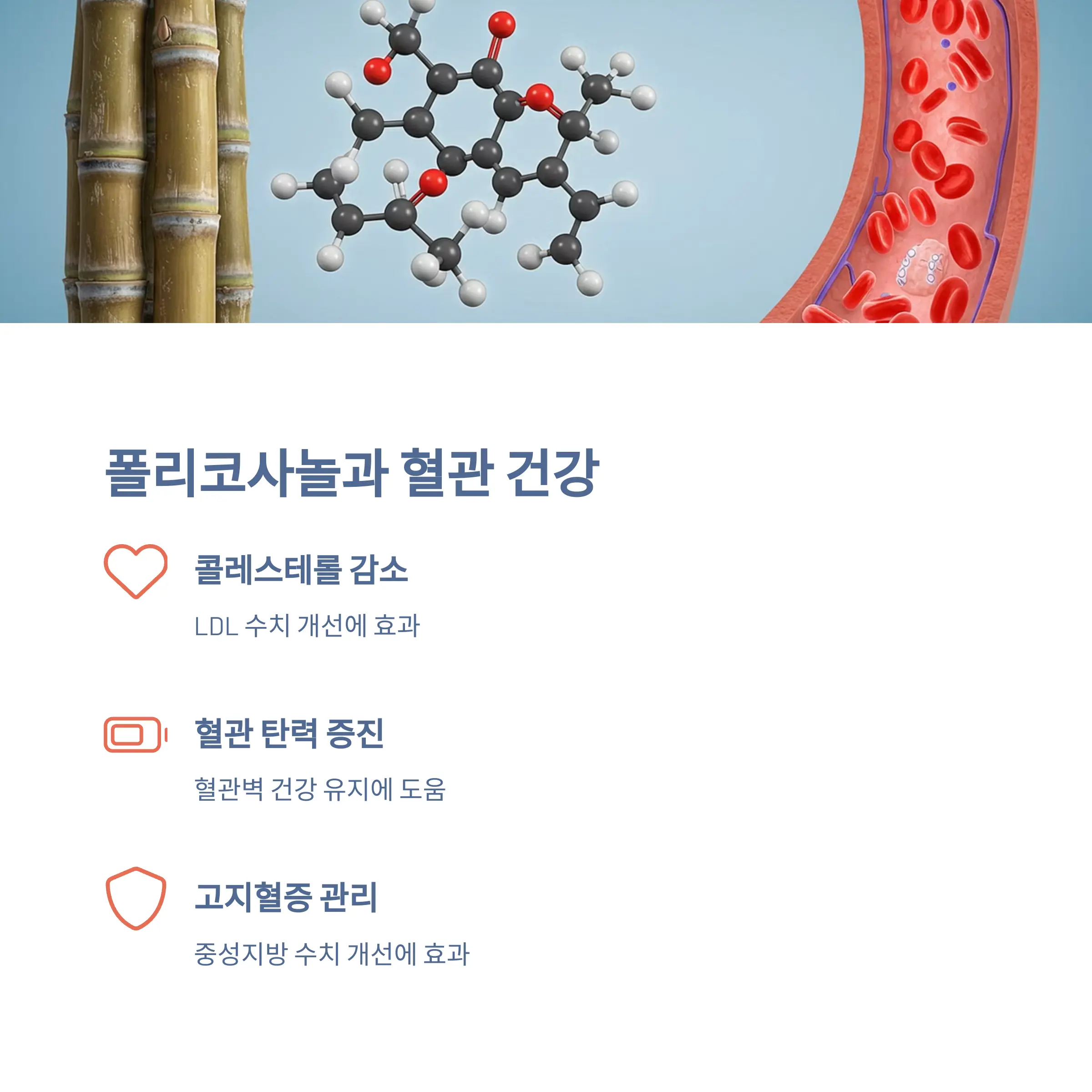 폴리코사놀도 최근에 주목받는 성분이에요. 콜레스테롤 수치를 낮춰주고 혈관 벽을 탄력 있게 만들어주는 데 효과가 있다고 해요. 특히 중성지방이나 LDL 수치가 높다고 지적받은 분들은 눈여겨볼 만합니다.