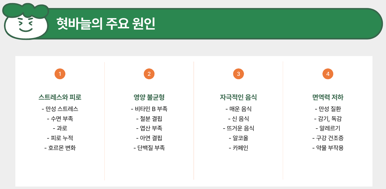 혓바늘이 생기는 원인은 여러 가지가 있습니다.