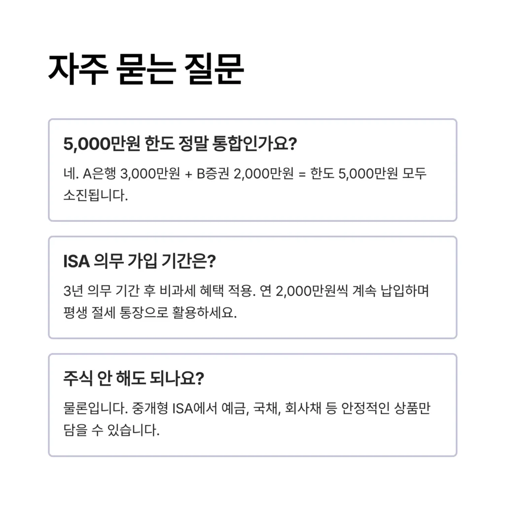 A: 네 3년의 의무 기간을 채워야 비과세/분리과세 혜택이 적용됩니다. 하지만 3년 뒤에 해지하라는 뜻이 아닙니다. 연 2,000만원씩 계속 납입하며 절세 헤택을 굴려가는 평생 절세 통장으로 활용해야 합니다.