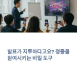 발표를 준비하면서 같은 고민, 한 번쯤 해보셨죠? “사람들이 집중하지 않으면 어쩌지?”“반응이 없으면 분위기가 어색해지진 않을까?” 누구든 발표 전에 그런 걱정을 한 적이 있을 겁니다. 여러 명의 참여자가 함께 있는 발표에서는 내 말에 청중이 어떤 반응을 보일지 모르는 것이 가장 불안하죠. 이제는 단순히 말만 하는 발표가 아니라 청중이 직접 참여하고 반응하는 발표가 더욱 효과적입니다. 그 중심에는 … Read more