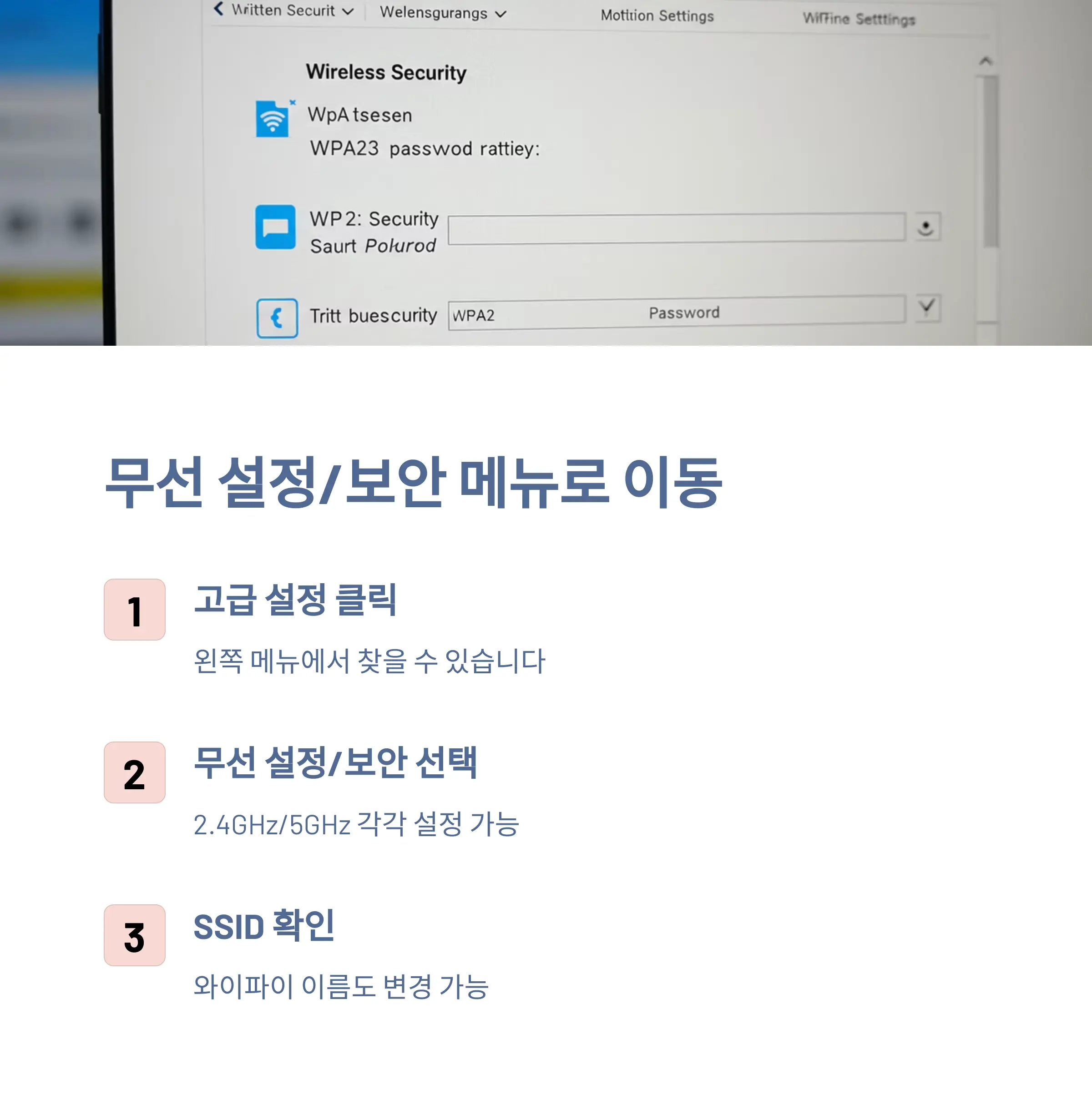 - SSID(와이파이 이름)도 이 화면에서 변경할 수 있습니다