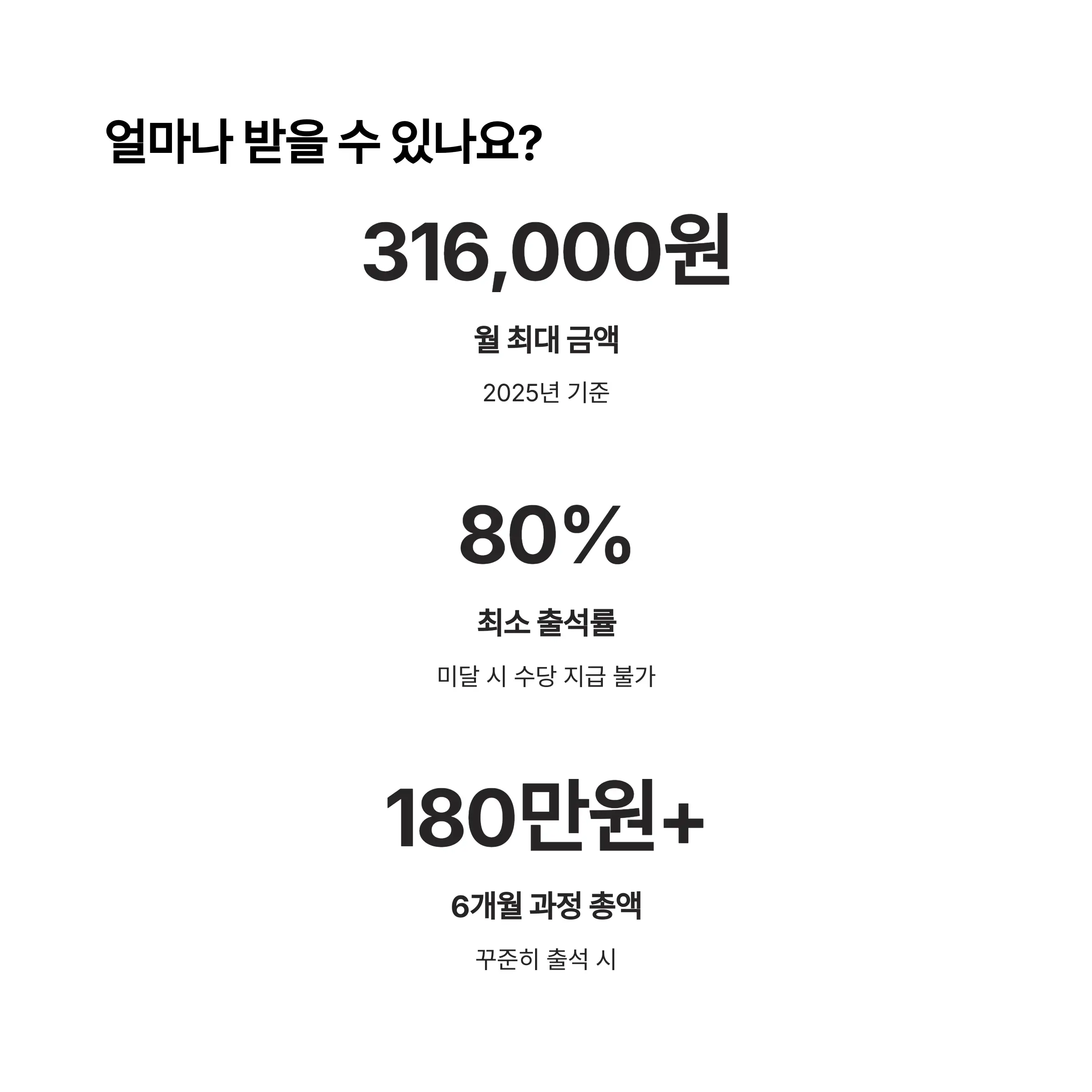 - 2025년 KDT 특별훈련수당: 월 최대 316,000원 지급