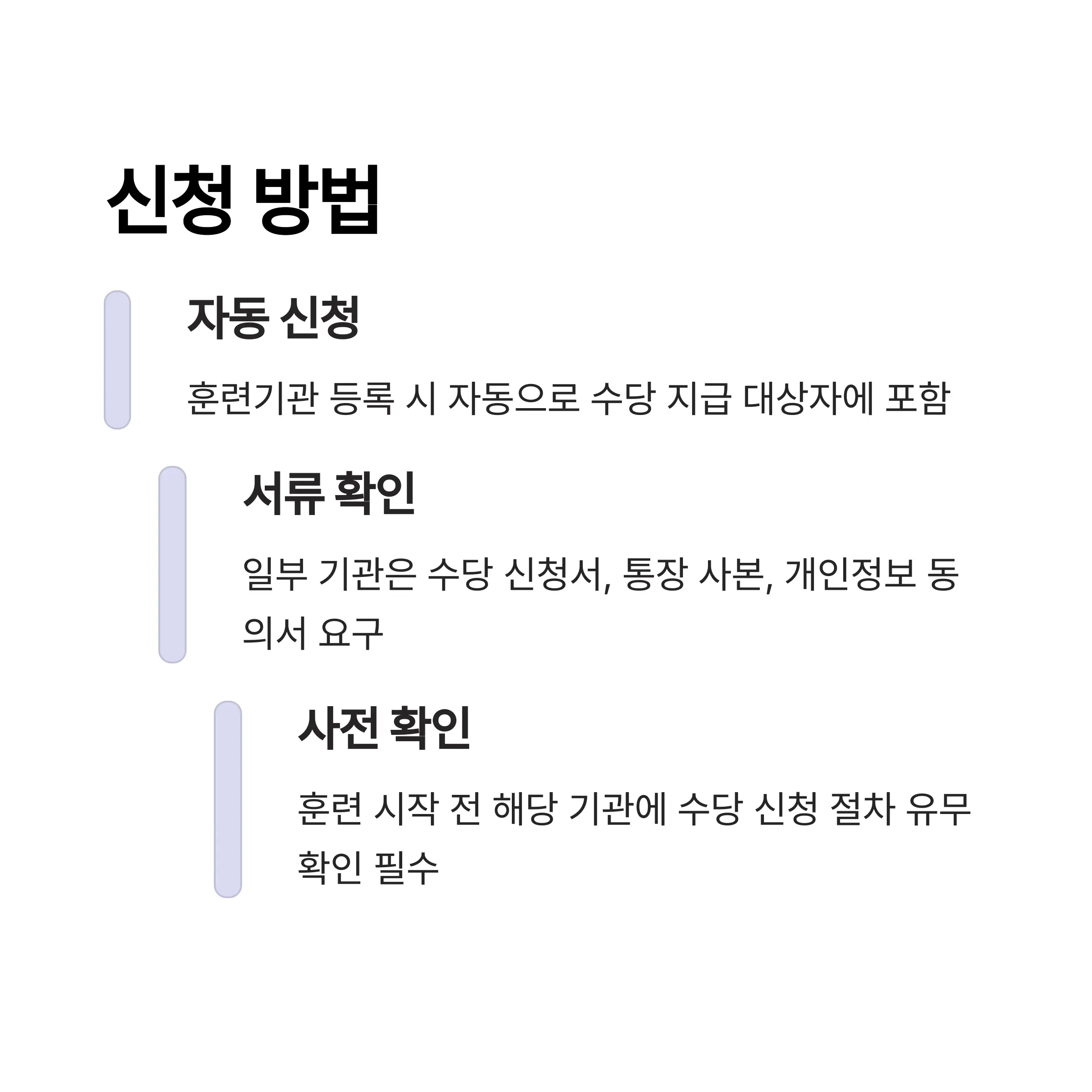 따라서, 훈련 시작 전 반드시 해당 기관에 수당 신청 절차 유무를 확인해야 합니다.
