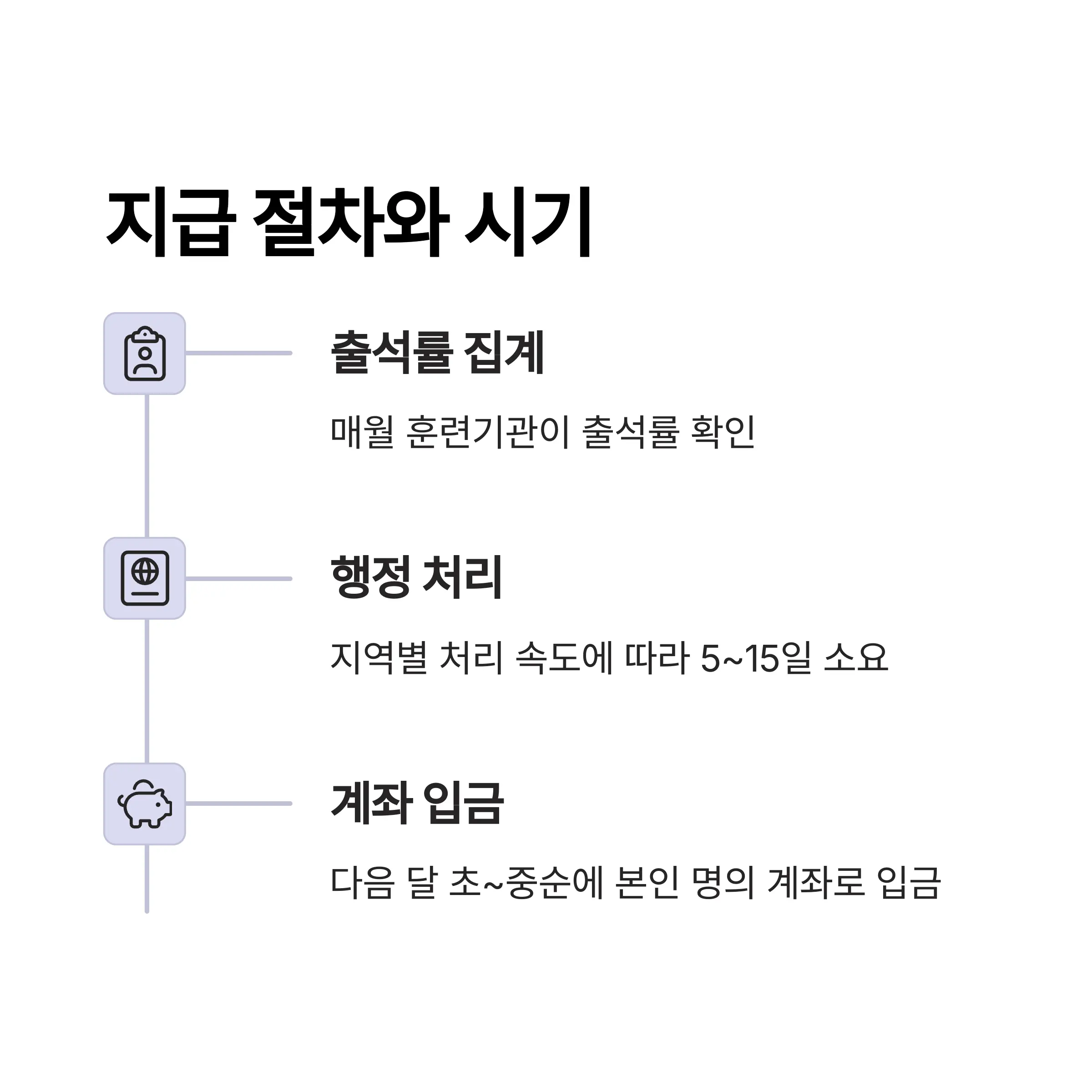 - 매월 훈련기관이 출석률을 집계한 후, 다음 달 초에 지급