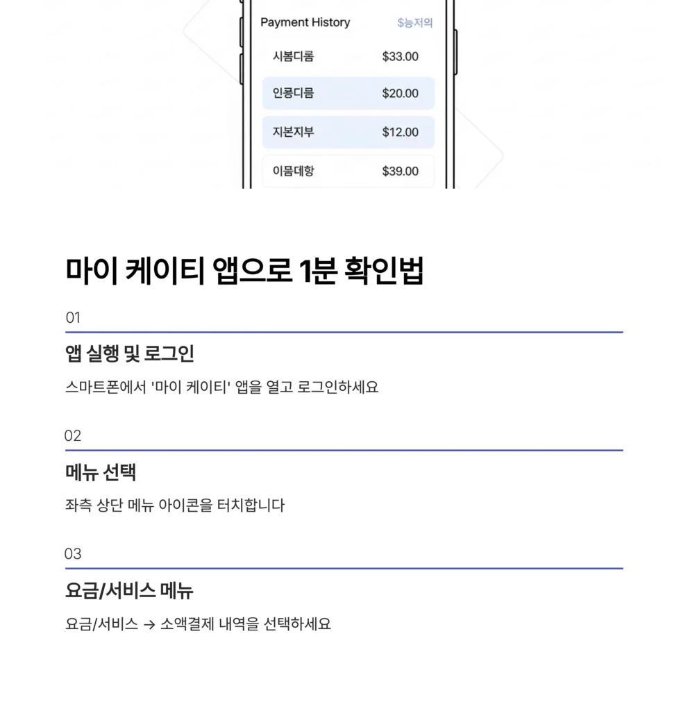 마이 케이티 앱으로 1분 만에 내역 조회하기